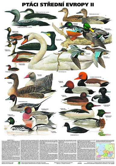 Na život ve vodě a kolem ní se specializuje řada ptáků, které představuje tato tabule. Patří sem čeledi potáplicovití, potápkovití, kormoránovití a kachnovití.