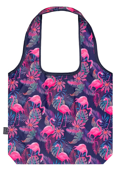 Díky skládací nákupní tašce v nápaditém barevném designu plameňáků budete i s velkým nákupem vypadat úžasně. Tato praktická taška se může opakovaně používat a stane se vašim každodenním pomocníkem. Taška je složená do malé kapsičky, která po rozložení tašky poslouží jako prostor k ukládání různých drobností.