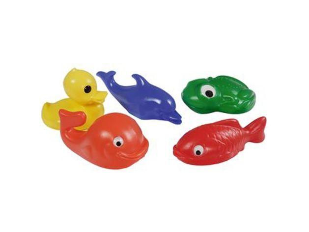 Plavací sada zvířátka do vany plast 5ks v síťce 30x15x8cm 12m+