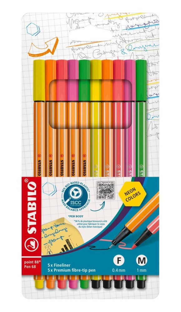 Popisovač STABILO point liner 88/Pen 68 neon sada 10 ks v pouzdru