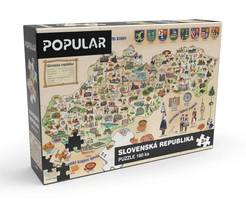 Milujete cestování a skládání puzzle? Pak je tato mapa Slovenské republiky přesně pro vás. Zeměpisné puzzle pro děti s mapou Slovenské republiky a ilustracemi v podobě místních památek a turisty vyhledávaných míst. Puzzle vám pomohou naučit se jaké pamětihodnosti, stavby či přírodní útvary zde naleznou. Obrázky od českého výtvarníka. Počet dílků: 160 ks. Rozměr výrobku: 67,5x 47,5 cm. Rozměr balení: 31x22,5x7 cm. Věk: 3+