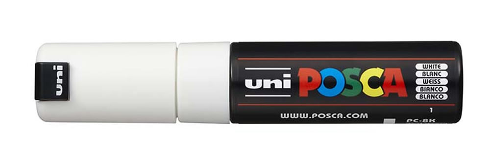 Efektivní popisovač se širokým seříznutým hrotem umožňuje kresbu úhledných křivek a krytí velkých ploch. V zajímavé škále barev. Ideální pro stínování, street-art kresby; pro začátečníky i profesionály. Tl. linky: 8 mm široký, hrot: akryl/ seříznutý, tělo: plast (PP), škála barev: 17 vč. metalických. Obsahuje bezkonkurenční inkoust, jehož složení se od svého vytvoření nezměnilo, je mimořádně bohatý na pigmenty a je extrémně odolný vůči atmosférickým podmínkám a plynutí času. Jeho matné barvy mají velkou hloubku - umělci je milují pro svá díla a fandové jsou ohromeni „magickým“ efektem Posca. Obsahuje jedinečný ventilový mechanismus, který zaručuje perfektní utěsnění a šetří barvu v průběhu času. Stejný mechanismus se používá k naplnění popisovačů Posca pro použití a k opětovnému nasycení špičky tak často, jak je to nutné během tvoření. Barva je velmi bohatá na pigmenty, čímž vykazuje výsledky vynikající hustoty. Jeho jedinečné složení na vodní bázi poskytuje jasné, matné, neprůhledné barvy, které opravdu vydrží. Je bez zápachu. Barvy jsou vrstvitelné, mísitelné, vodou rozpustné, odolné vůči povětrnostním vlivům a nabízejí neomezené kreativní možnosti. Vyrobeno v Japonsku.