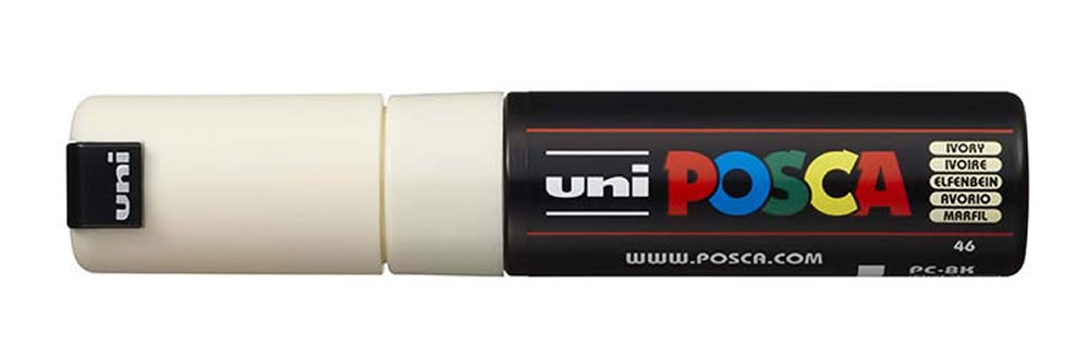 Efektivní popisovač se širokým seříznutým hrotem umožňuje kresbu úhledných křivek a krytí velkých ploch. V zajímavé škále barev. Ideální pro stínování, street-art kresby; pro začátečníky i profesionály. Tl. linky: 8 mm široký, hrot: akryl/ seříznutý, tělo: plast (PP), škála barev: 17 vč. metalických. Obsahuje bezkonkurenční inkoust, jehož složení se od svého vytvoření nezměnilo, je mimořádně bohatý na pigmenty a je extrémně odolný vůči atmosférickým podmínkám a plynutí času. Jeho matné barvy mají velkou hloubku - umělci je milují pro svá díla a fandové jsou ohromeni „magickým“ efektem Posca. Obsahuje jedinečný ventilový mechanismus, který zaručuje perfektní utěsnění a šetří barvu v průběhu času. Stejný mechanismus se používá k naplnění popisovačů Posca pro použití a k opětovnému nasycení špičky tak často, jak je to nutné během tvoření. Barva je velmi bohatá na pigmenty, čímž vykazuje výsledky vynikající hustoty. Jeho jedinečné složení na vodní bázi poskytuje jasné, matné, neprůhledné barvy, které opravdu vydrží. Je bez zápachu. Barvy jsou vrstvitelné, mísitelné, vodou rozpustné, odolné vůči povětrnostním vlivům a nabízejí neomezené kreativní možnosti. Vyrobeno v Japonsku.