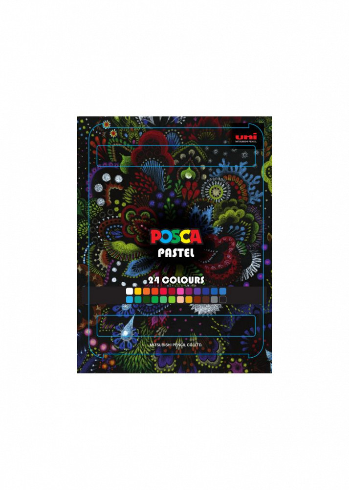 Voskové pastely jsou, stejně jako akrylové popisovače Posca, určeny pro psaní, kreslení a malování na nejrůznější povrchy. Samozřejmostí je papír, můžete je však velmi dobře aplikovat na sklo, kov, dřevo, keramiku, textil, plast, kůži a další. Obsažený pigment je velmi intenzivní, barva se snadno nanáší na povrch. Odstíny se mezi sebou výborně mísí a jsou světlostálé. Pastely nejsou hrocené. Celá sada je uložená v odolné plastové krabičce, která je designově zpracovaná. Zajímavostí balení, je také přiložená plochá guma s logem firmy, kterou se celá krabička přetáhne, aby držela pohromadě. Pastely jsou vhodné pro začínající i pokročilé umělce. Mimoto je lze využít v široké škále nejrůznějích hobby technik. Jejich vlastnosti ocení také drobní řemeslnící i velké firmy, které využívají při své práci suché permamentní popisovače. Balení: 24 ks. Vyrobeno v Japonsku.