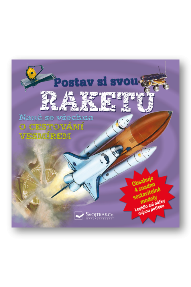 Jak skvěle se lze učit hrou! Tato interaktivní knížka obsahuje vše, co potřebuješ k postavení své vlastní sbírky modelů vesmírných raket! Je plná zajímavých faktů a je ideální pro zvídavé děti, které dychtí po vesmírném dobrodružství. Najdou v ní textovou část nabitou zajímavými informacemi a doplněnou ilustracemi a čtyři snadno sestavitelné modely – Vostok 1, raketoplán, Orion a vesmírný dalekohled Jamese Webba. K jejich sestavování není třeba lepidlo ani nůžky, díly stačí vytlačit z papíru a pospojovat. Ve chvíli budeš mít vlastní papírové modely těchto čtyř úžasných vesmírných raket. Objevuj záhady vesmíru se svými novými modely!