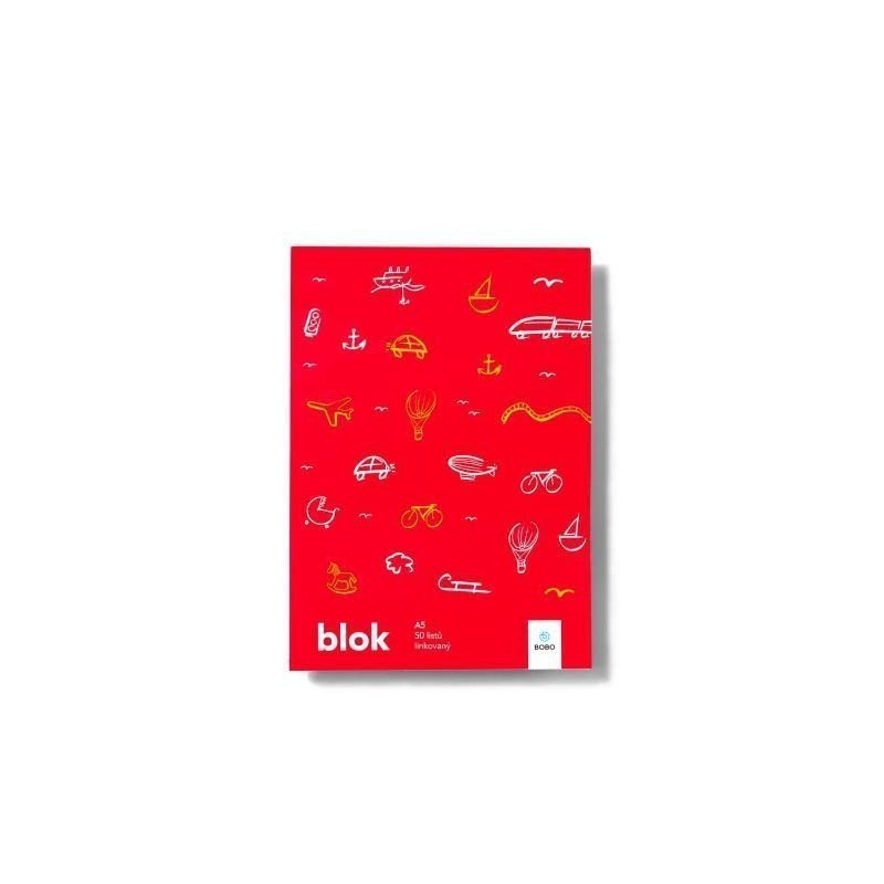 Střední poznámkový blok A5 s linkovanými papíry a ručně kreslenými motivy dopravních prostředků je určen pro rychlé poznámky, úkoly nebo nápady. Oblíbí si ho každý školák.