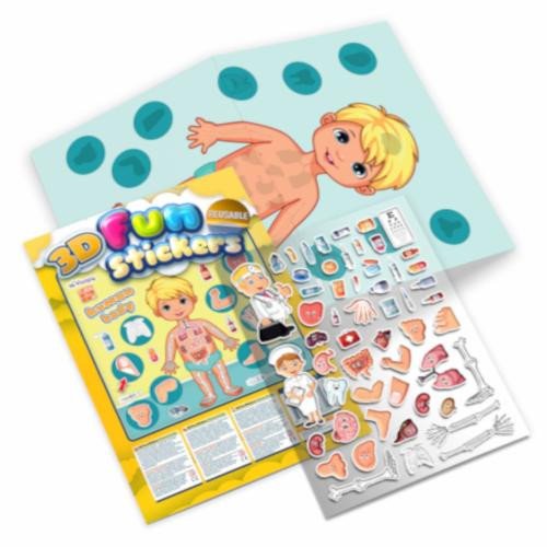 Kde se nacházejí plíce, srdce nebo mozek? Jaké přístroje má lékař v ordinaci? Co používá zdravotní sestřička k měření krevního tlaku či teploty? Dopřejte dětem zábavu, která nekončí, a rozvíjejte jejich představivost díky 3D samolepkám - inovativní novince se znovu použitelnými samolepkami v provedení - Poznej lidské tělo! Roztomilá příběhová sada obsahuje oboustranné pozadí se scenériemi lékařské ordinace a lidského těla v příjemném animovaném formátu A3, jakož i několik desítek znovu nalepovacích 3D pěnových samolepek. Potěší každého malého zvědavce, kterého zajímá, co se děje v lékařské ordinaci. Zároveň přinášejí hravé poznávání anatomie lidského těla. Formát: A4 (po otevření A3)