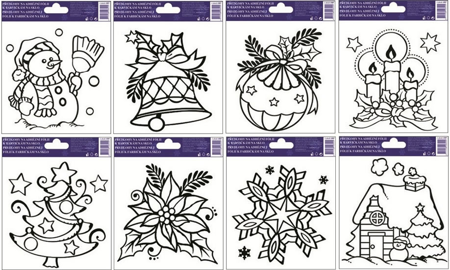 Předlohy na malování na sklo s vyvýšenou konturou - vánoční 14 x 14 cm