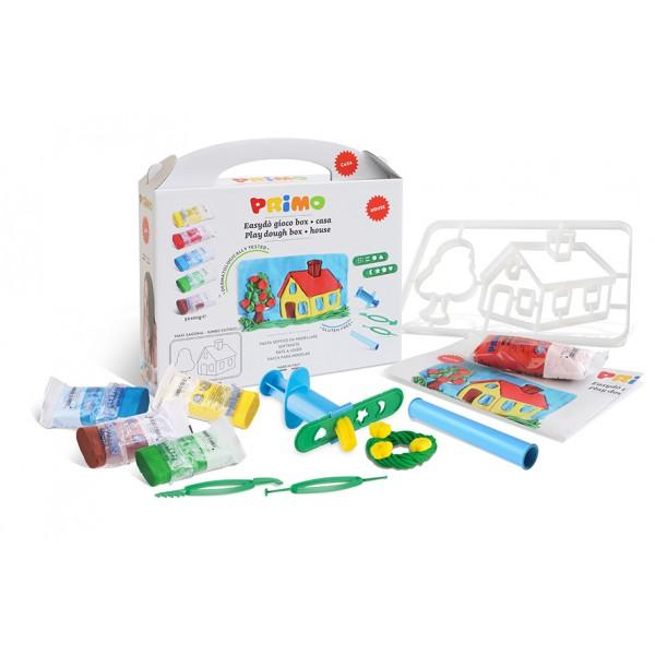 Dárková kreativní sada plastelíny PRIMO a doplňků na tvoření uložena v praktickém uzavíratelném kartonovém kufříku. Sada obsahuje: 5x 100g plastelína, 1x vykrajovátko silueta, 6x modelovací doplňky, PVC podložka. Plastelína je výborně tvarovatelná, elastická, příjemná na dotek a nešpiní ruce. Barvy jsou syté a jasné. Po otevření plastelínu uchovávejte ve vzduchotěsné nádobě, zabráníte tak jejímu vyschnutí.