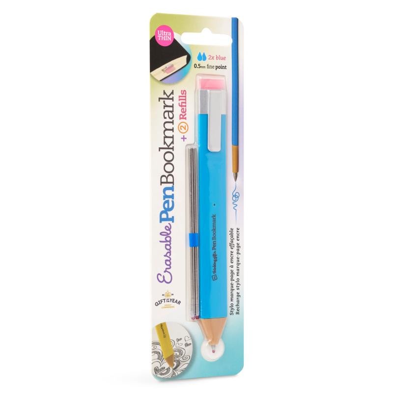 Vše v jedné záložce a peru s gumou. Ultra tenký design, odolný klip a kvalitní psací hrot. Unikátní produkt a bestseller ve výrobě. FUNKCE •Ideální pro udržení stránky, psaní poznámek do knih a časopisů (a mazání chyb!)•Součástí jsou 2 náplně •Kvalitní gelově modrý inkoust •Guma při gumování nezanechává žádné „drobky“
