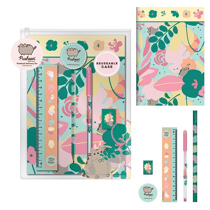 Školní set Pusheen. Obsah: zápisník A5 pravítko 15 cm tužka guma ořezávátko pero