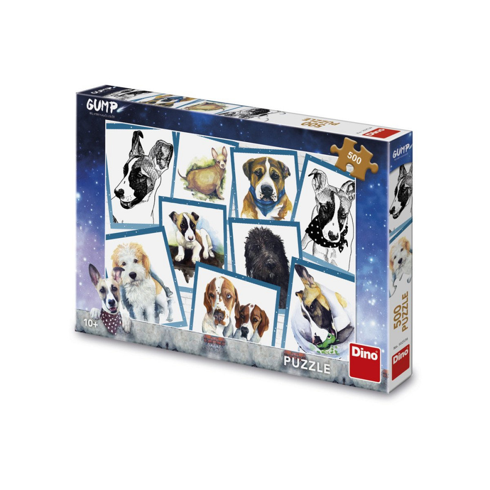 Gump je pes, který naučil lidi žít. A teď vás přiměje zamilovat si i skládání puzzle. Z 500 dílků si postavíte nejen hlavního hrdinu známého románu Filipa Rožka, ale i jeho další psí kamarády. Připomeňte si silný příběh psího tuláka nebo puzzle věnujte někomu, koho kniha okouzlila. Za pomoci speciálního lepidla na puzzle lze skládačka také podlepit.