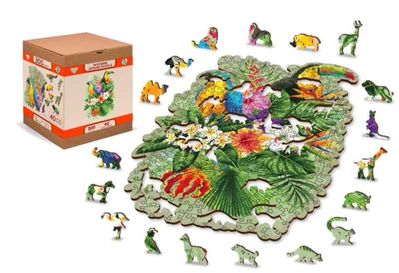 Wooden City Puzzle Tropičtí ptáci, dřevěné, 300 dílků