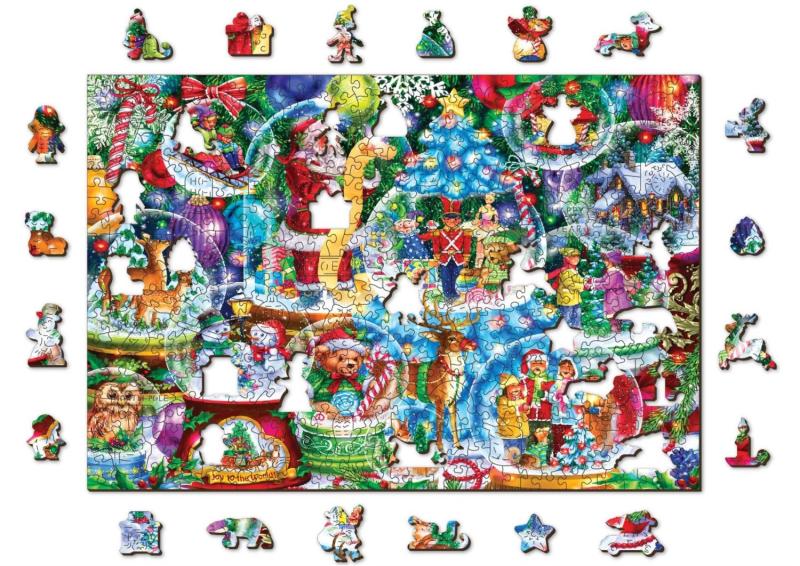 Wooden City Puzzle Vánoční sněžítka 2v1, dřevěné, 505 dílků