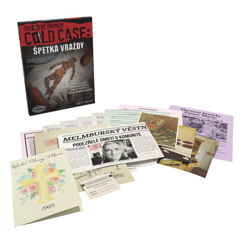 VYŘEŠTE VRAŽDU, KTERÁ STÁLE TRÁPÍ MALÉ ANGLICKÉ MĚSTEČKO V roce 1983 se Harold Green, milý a ve své komunitě zbožňovaný stařík, chystal na každoroční letní slavnost svého kostela v anglickém Melmbury. Když nedorazil, neformální hledání vedlo k nálezu jeho mrtvého těla. Vražda nebyla nikdy vyřešena. Ve hře Odložené případy: Špetka vraždy jste VY vyšetřovateli smrti Harolda Greena a pokoušíte se zločin vyřešit. Dokážete to? Uvnitř krabice najdete realistické dokumenty týkající se případu, které obsahují vše, co potřebujete k jeho rozluštění. Prozkoumejte jednotlivé stopy, poskládejte dohromady důkazy a vyřešte vraždu! Potom svou odpověď odešlete online a zjistěte, jestli jste dospěli ke správnému závěru a konečně zjednali v Melmbury spravedlnost, kterou si zaslouží. Hra Odložené případy: Špetka vraždy spojuje řešení hádanek a detektivní příběhy do strhujícího vyšetřovacího zážitku a skvěle se hodí jak pro malou skupinu přátel, tak pro jednoho hráče. Máte na to, abyste vyřešili odložené případy? Hra obsahuje: Policejní poznámky, výstřižek z novin, místní mapu, fotografie podezřelých a zápisy z jejich výslechů, výpovědi svědků, fotografie z místa činu a policejní protokol, půdorysné plány, materiály ke slavnosti, pitevní protokol, prověrku minulosti, zpravodaj, jízdní řád autobusu, hlášení pojistné události, záznam hovorů na policejní lince, záběr z kamerového systému, ručně psanou poznámku a další důkazy! Vybalte obsah a vyzvěte své přátele k rozluštění případu!