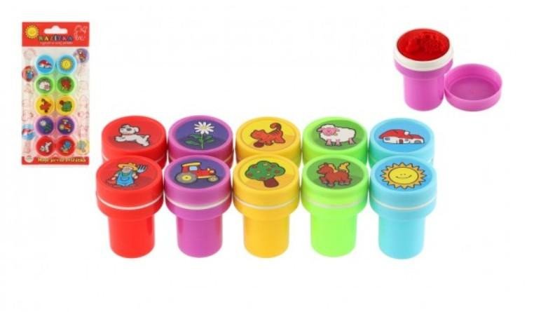 Dětská razítka potěší každé malé dítě. Děti mohou tisknout s razítky jednotlivé obrázky, dokreslit si je a poskládat z nich příběh. Balení obsahuje 10 ks razítek. Rozměr razítka: 2,5 x 4 cm Rozměr karty: 9 x 19 x 4 cm Vhodné od 3 let