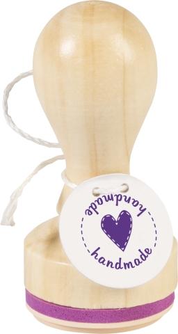 Kulaté dřevěné razítko s motivem Hand-made, průměr 3,2 cm.