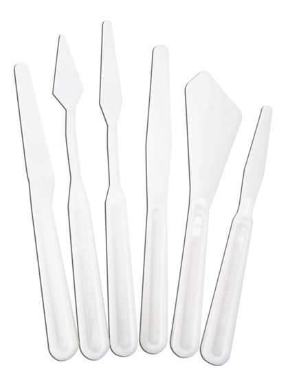 Sada 6 kusů umělohmotných špachtlí a nožů, které jsou vhodné pro hobby i profesionální malbu temperovými, akrylovými a různými jinými barvami, efektními pastami či akrylovými gely. Vynikající pomůcka zejména pro studenty a žáky na školách nebo pro začátečníky. Špachtle a nože mají různé tvary pro dosažení různých efektů. Balení obsahuje: 2 x malířský nůž, 1 x paletový nůž, 3 x malířská špachtle.