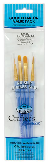 Royal & Langnickel Sada štětců GOLD TAKLON, 4ks (ploché č.4,8, kulaté č.3, špičaté č.3/0)