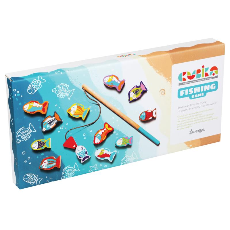 CUBIKA je nová značka dřevěných hraček vyrobených pouze z ekologicky pěstovaného dřeva s velmi precizním opracováním a líbivým designem. Rybolov je známá hra pro děti, jejímž cílem je vylovit co nejrychleji nejvíce rybiček z rybníka. K tomu slouží dva pevné dřevěné pruty opatřené na svých koncích magnetem, protože každá rybička má v sobě zabudovaný kovový plíšek. Rybky pak vyskakují z vody jako živé. Sortiment hraček značky CUBIKA pomáhá dětem rozvíjet především senzomotorické schopnosti a dovednosti, logické myšlení, kreativitu, představivost a různé poznávací znalosti. Hračky jsou vyrobeny z nejkvalitnějšího javoru a buku a k barvení se používají též vysoce kvalitní barvy na vodní bázi, které jsou naprosto bezpečné pro děti a nemají žádný zápach. Všechny výrobky této značky mají německý certifikát TÜV a jsou vyrobeny dle evropské normy pro bezpečnost hraček EN 71. Nevhodné pro děti do 2 let. Vyrobeno v Evropě. Věk 2+
