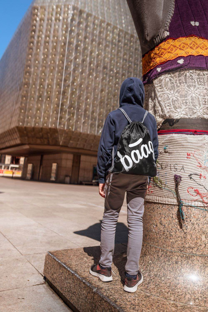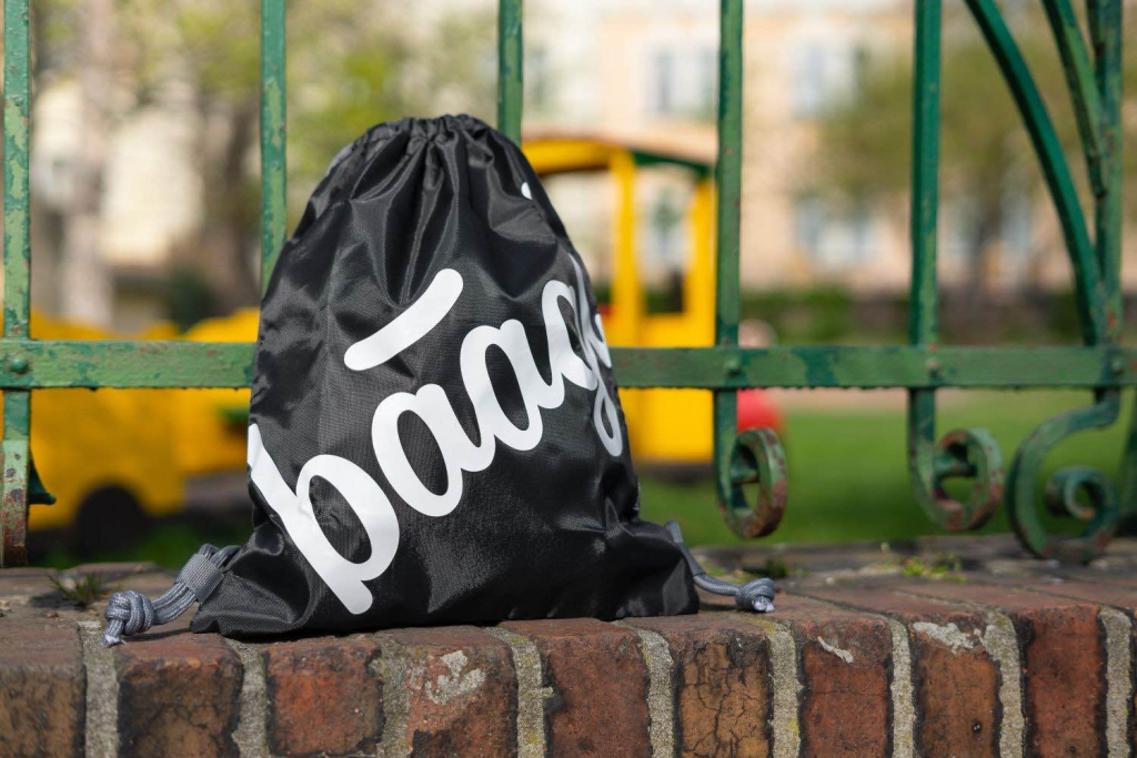 • Sáček na cvičky nebo přezůvky v černé barvě s logem Baagl.