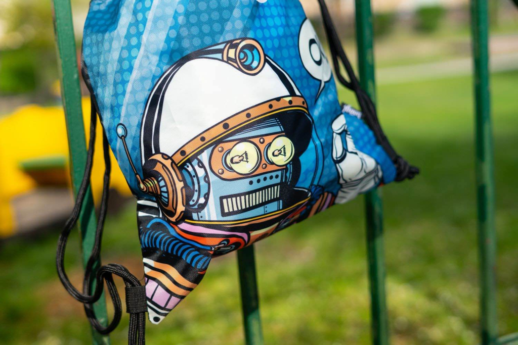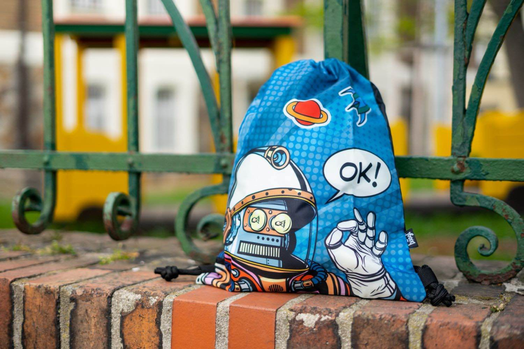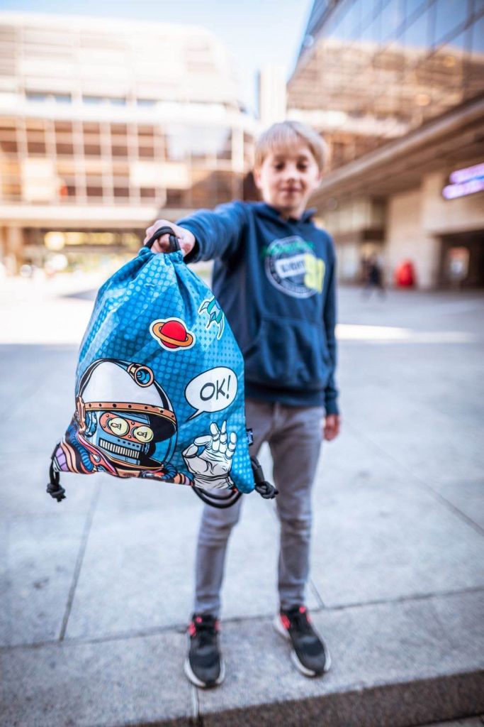 • Sáček na cvičky nebo přezůvky v chlapeckém designu z pevného omyvatelného materiálu.