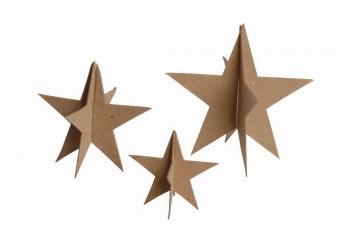 Sada lepenkových tvarů pro výrobu 3D dekorací ve tvaru hvězd. Lepenku lze pomalovat, polepit či jinak odekorovat. Sada je vhodná k vytváření větších 3D dekorací.