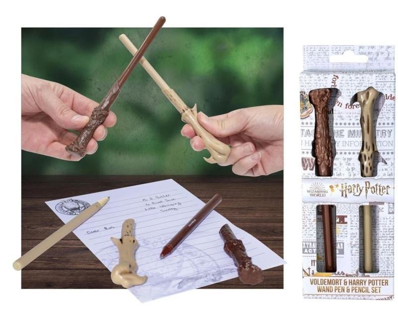 Set kouzelnických per ve tvaru kouzelnických hůlek Harryho Pottera a Voldemorta.