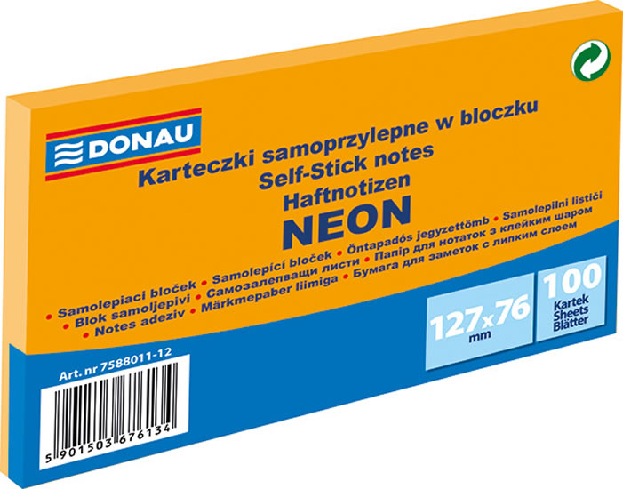 Samolepicí bloček 127 x 76 mm - neonově oranžový 100 listů