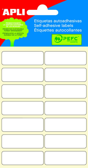 Samolepící etikety, obdélníkový tvar. Rozměr 13 x 40 mm. Permanentní. Malé balení v blistru, 84 ks, 6 listů.