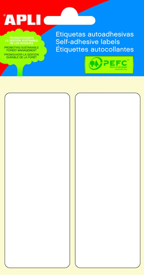 Samolepící etikety, obdélníkový tvar. Rozměr 38 x 102 mm. Permanentní. Malé balení v blistru, 12 ks, 6 listů.