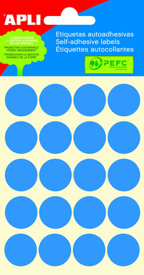 Samolepicí etikety kulaté, průměr 19 mm. 100 ks v balení, 5 listů.
