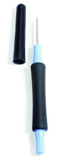 Nástroj na dírky s ochranným víčkem. Šídlo je použitelné na papír, polymerové hmoty, karton.