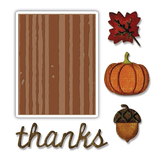 SIZZIX Thinlits vyřezávací kovové šablony - podzim 4 ks + embosovaci kapsa