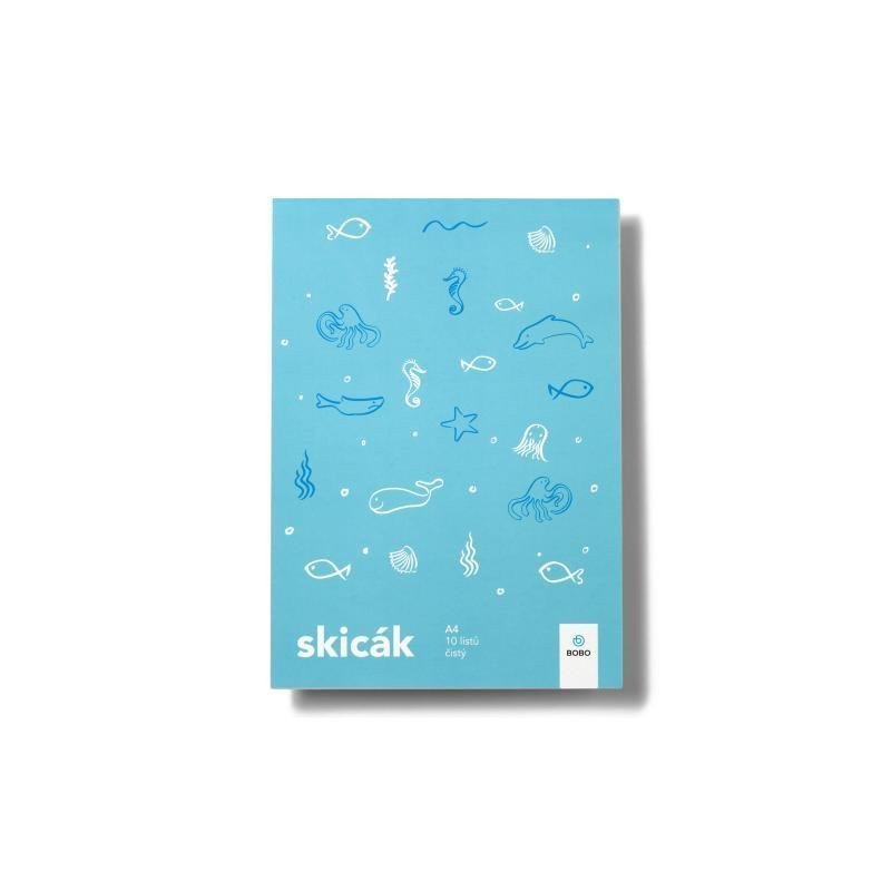 Skicák A4 s motivem mořského světa se bude líbit klukům i holkám. Tvrdší papír je vhodný pro kresbu a malbu pastelkami, fixami i vodovkami.