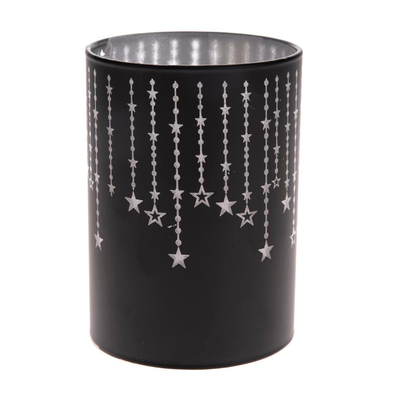 Skleněný svícen s hvězdami a LED světlem malý