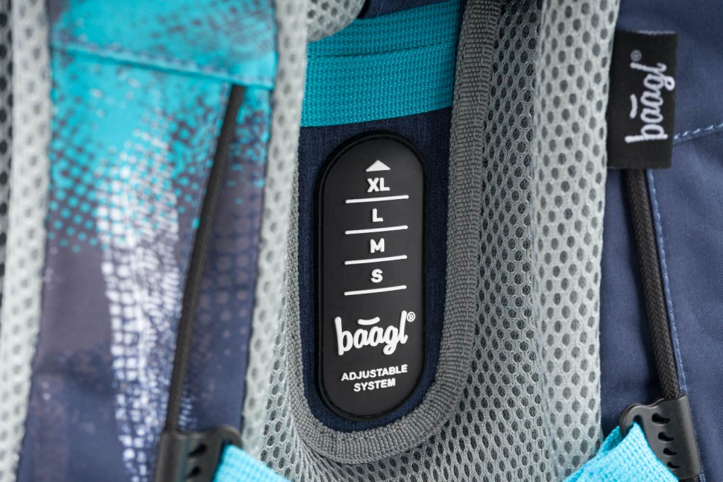 • Posuvný zádový systém BAAGL ADJUSTABLE SYSTEM umožňuje nastavení optimální polohy popruhů vzhledem k výšce dítěte.