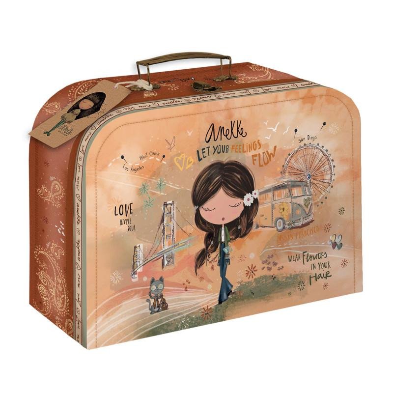 Papírový dětský kufřík velikosti 35cm s motivem známého děvčátka Anekke z dílny španělské designérky.