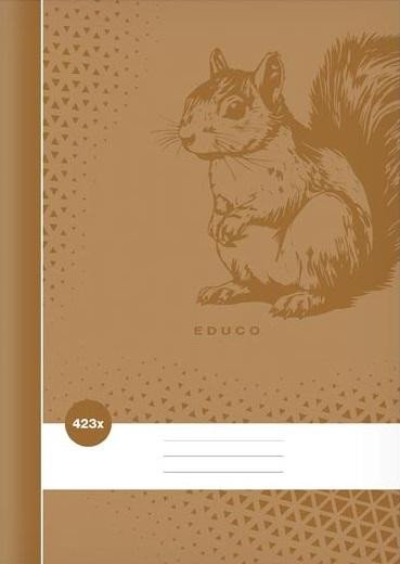 Školní sešit linkovaný/čistý ve formátu A4, v hnědé barvě, s motivem veverky, v deskách z křídového papíru. Každá stránka je ze 2/3 linkovaná a z 1/3 čistá. Sešit je určený pro žáky I. stupně ZŠ.