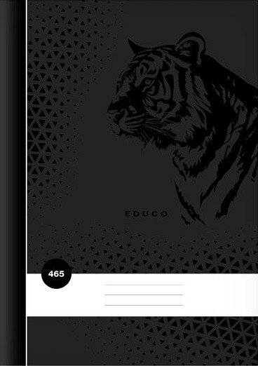 Školní sešit ve formátu A4, čtverečkovaný, v černé barvě, s motivem tygra, v deskách z křídového papíru.