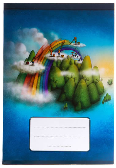 Školní sešity Duhová Kočka jsou unikátní také obálkou, která má parciální lak. Ten vytváří s pomocí světla efektní obrazce a ilustrace na obálce doslova ožívá. Na přední obálce je klasický rámeček s třemi řádkami pro nadpis předmětu, jména, ročníku nebo tvojí třídy.