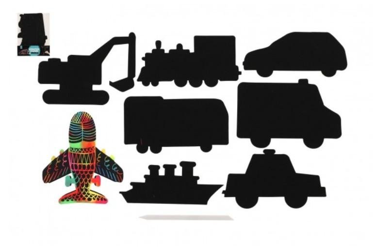 Škrabací obrázek, kde perem šeškrábete dle vlastní fantazie dopravní prostředky. Vyškrabejte např. dveře, okna, atp. Dítě nakonec získá obrázek, kterým si může vyzdobit pokojíček, přičemž samo získá mnoho potřebných dovedností, jako je pozornost, trpělivost, opatrnost a přispěje k rozvoji tvořivého talentu a motoriky. Sada obsahuje 8 obrázků. Rozměry balení 12 x 16 x 0,5 cm. Vhodné pro děti od 3 let.