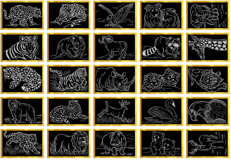 Škrabací obrázky se zlatým podkladem 15 x 10 cm
