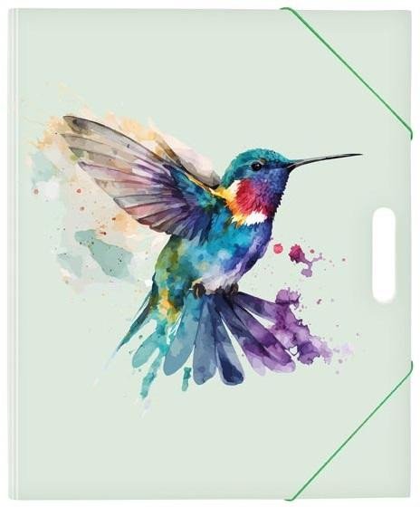 Složka na výkresy v zelené barvě s motivem kolibříka. Je vyrobená z kvalitního lepenkového kartonu, potaženého laminem. Uvnitř složky jsou růžky pro uchycení výkresů A4. Složka je opatřená gumičkou pro pevné uzavření a průhmatem pro snadné přenášení. Výkresy tak zůstanou neporušeny.