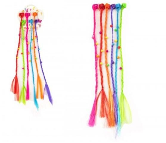 Snad každá holčička si přeje mít barevné dlouhé vlasy. Dopřejte jí to díky barevnému příčesku, který je připevněn na sponce/skřipci do vlasů. Jednotlivé příčesky jsou dlouhé cca 30 cm. Barevné copánky mohou být také vhodným doplňkem ke karnevalovému kostýmu. Balení obsahuje 6 ks copánků s ozdobou v podobě kytiček. Rozměry balení 10 x 36 x 1 cm. Vhodné pro děti od 3 let.