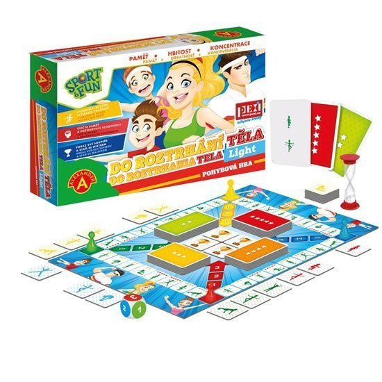 Energická hra pro 2-4 hráče od 4 do 9 let, ve které je úkolem provádění různých cviků v daném pořadí. Cílem je získat všechny žetony za jednotlivé cviky. Vítězem je ten hráč, který získá sadu osmi žetonů a žeton „Pohá vítězů“. Tato hra vyžaduje nejen pozornost a dobrou paměť, ale i sílu, pohybovou koordinaci a fyzickou zdatnost. V případě, že hrají hráči různého věku, mohou se domluvit, že starší hráči budou provádět více cviků např. dvojnásobek cviků zobrazených na kartě. Soutěžte nejen s ostatními hráči, ale také sami se sebou! Jak získáte žeton do skládačky a vyhrajete hru? Deska, pro pohyb figurek, obsahuje pole s obrázky hvězd (2 až 5) a ikony různých fyzických aktivit. Počet hvězd na poli označuje, který ze 4 typů cvičebních karet sejmete z balíčků karet. Čím více hvězd, tím více cviků bude sestava obsahovat a obtížnější jí provést. Ikona na políčku označuje, který žeton do skládačky získáme. Každý hráč musí sbírat 8 různých žetonů tvořících skládačku a žeton "Pohár vítězů". Ten může získat až po shromáždění všech osmi dílků skládačky.