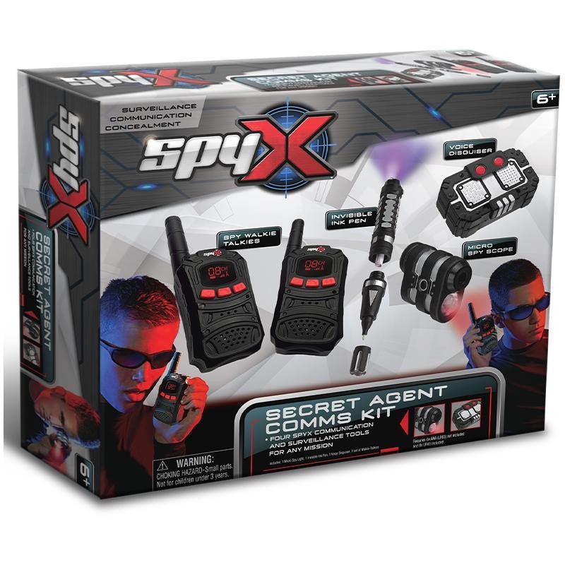 Komunikační sady tajných agentů: Vysílačky, Neviditelné inkoustové pero, Hlasový maskér, Mikroskopický dosah ,6+ Použijte baterie „AAA/LR03 1,5V (nejsou součástí balení) a baterie „AAA/LR43“ 1,5V (jsou součástí balení – pouze pro zkušební provoz).