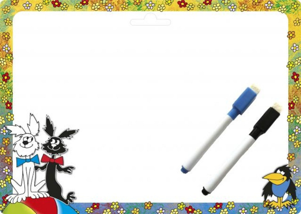 - lesklý povrch z lícové i rubové strany, nedílnou součástí výrobku 2x stíratelný popisovač s plstěným hrotem (inkoust modré a černé barvy)