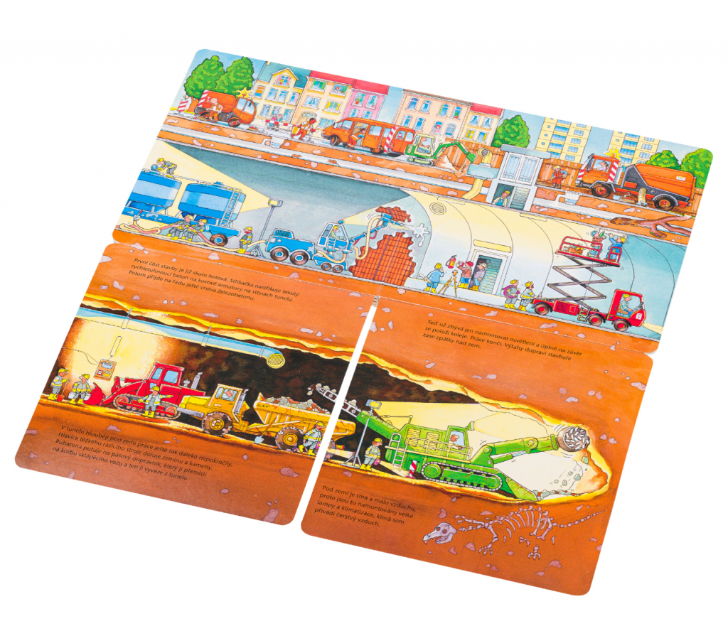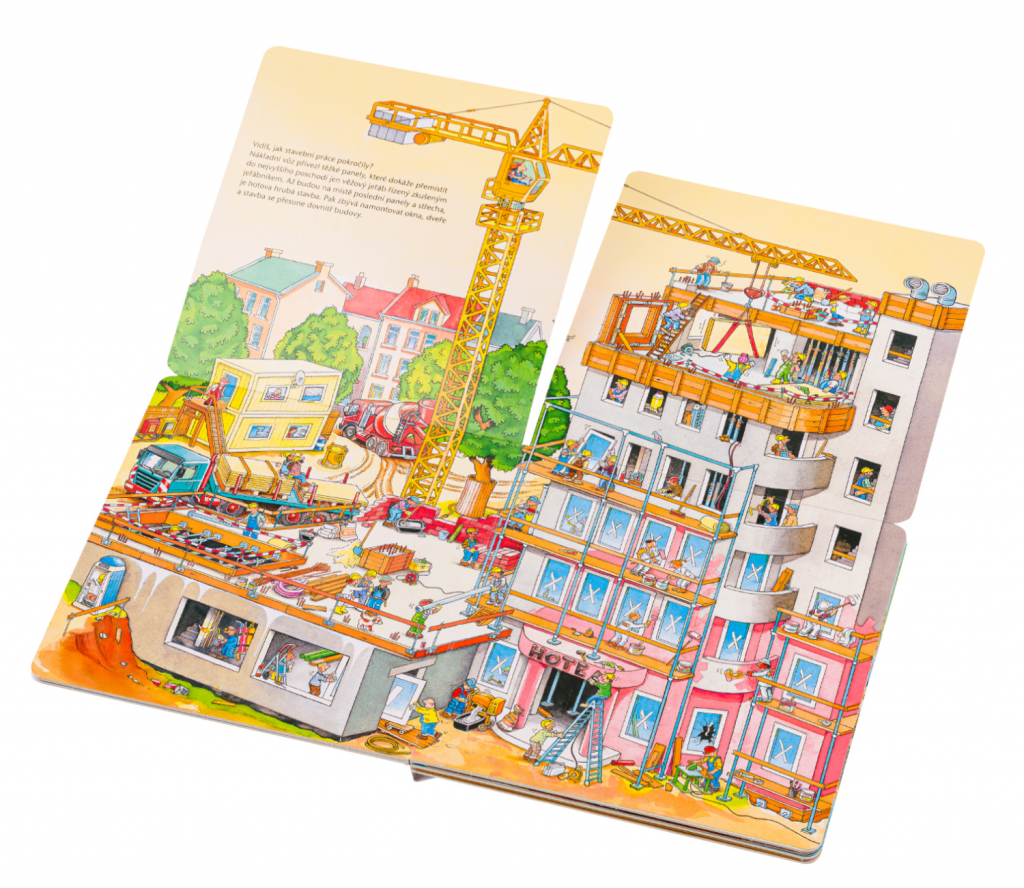 Ve městě se hodně staví. Ale není stavba jako stavba! Některé šplhají do velkých výšek, jiné vznikají hluboko pod zemí. A co teprve takový most – jak se vlastně staví most přes řeku? V této knížce navštívíte stavbu výškové budovy nového hotelu, zúčastníte se prací na stavbě mostu přes řeku a podíváte se hluboko pod zem, jak vzniká tunel metra. Tak hurá na stavbu!