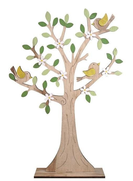 Strom dřevěný s ptáčky 30 x 44 cm